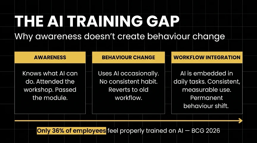 Behaviour change requires a different question: Where in this person's daily workflow does AI actually fit? Most training never asks it.